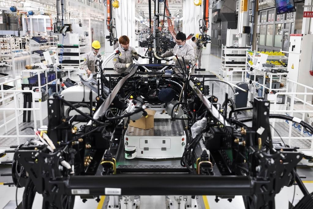 3月30日,工作人員在位于吉林長(zhǎng)春的一汽解放J7智能工廠內(nèi)進(jìn)行整車裝配作業(yè)。新華社記者 許暢 攝