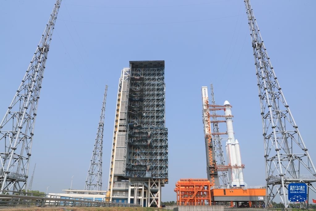 5月7日,天舟六號(hào)貨運(yùn)飛船與長(zhǎng)征七號(hào)遙七運(yùn)載火箭組合體在垂直轉(zhuǎn)運(yùn)中。新華社發(fā)(邱立軍 攝)