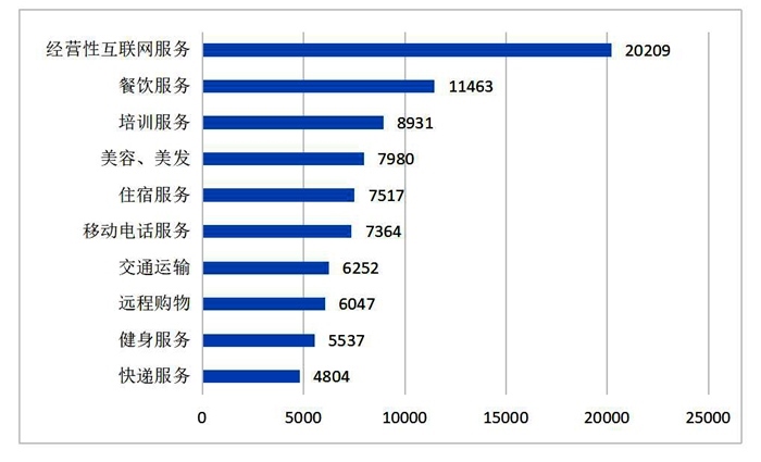 服務(wù)細(xì)分領(lǐng)域投訴前十位(單位:件)來源:中消協(xié)