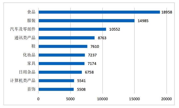商品細(xì)分領(lǐng)域投訴前十位(單位:件)來源:中消協(xié)