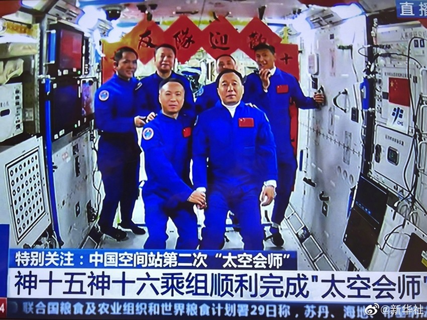 神舟十六號(hào)航天員順利進(jìn)駐中國空間站。兩個(gè)航天員乘組拍下“全家?!?,共同向牽掛他們的全國人民報(bào)平安。后續(xù),兩個(gè)航天員乘組將在空間站進(jìn)行在軌輪換。(王逸濤、張瑞杰、韓啟揚(yáng))