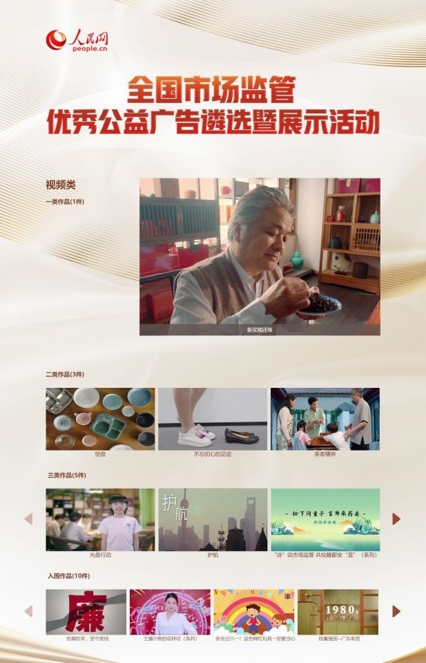 全國市場監(jiān)管優(yōu)秀公益廣告遴選暨展示活動(頁面截圖)。