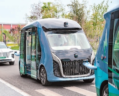 穿梭在一汽nbd總部的新能源無人駕駛列車。