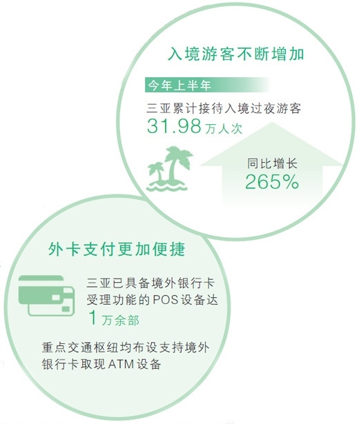 今年3月29日,三亞正式啟動創(chuàng)建外籍來瓊?cè)藛T支付便利化示范城市工作,圍繞現(xiàn)鈔支付、數(shù)字人民幣支付、境外銀行卡支付、移動支付、賬戶服務(wù)等五大支付服務(wù)體系,持續(xù)優(yōu)化“食住行游購娛醫(yī)”七大領(lǐng)域支付便利化水平,滿足短期差旅及中長期學(xué)習、工作、居住等不同類型外籍來瓊?cè)藛T在三亞的支付需求。