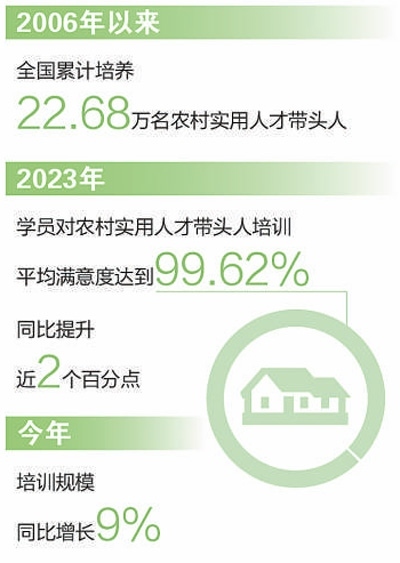 2006年以來,依托帶頭人培訓(xùn)項(xiàng)目,全國已累計(jì)培養(yǎng)22.68萬名農(nóng)村實(shí)用人才帶頭人?!皫ь^人培訓(xùn)以更新理念、開闊思路和增強(qiáng)能力為核心,旨在針對(duì)性提升學(xué)員各方面技能素質(zhì),進(jìn)一步發(fā)揮好農(nóng)村實(shí)用人才帶頭人示范引領(lǐng)作用,強(qiáng)化鄉(xiāng)村全面振興人才支撐?!鞭r(nóng)業(yè)農(nóng)村部人事司有關(guān)負(fù)責(zé)人說。