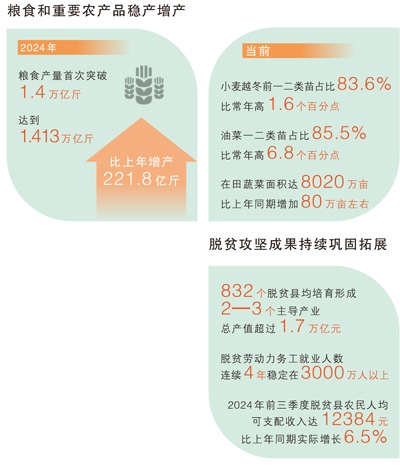 2024年,我國(guó)糧食和重要農(nóng)產(chǎn)品實(shí)現(xiàn)穩(wěn)產(chǎn)增產(chǎn)。