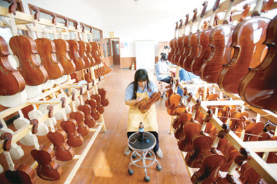 目前,東高村鎮(zhèn)已有五家樂(lè)器制造上下游企業(yè),其中華東樂(lè)器有限公司更是華北最大的提琴生產(chǎn)企業(yè)。其產(chǎn)品不僅在國(guó)內(nèi)市場(chǎng)占據(jù)重要地位,還遠(yuǎn)銷歐美、東南亞等國(guó)家和地區(qū),出口量占總量的80%以上。
