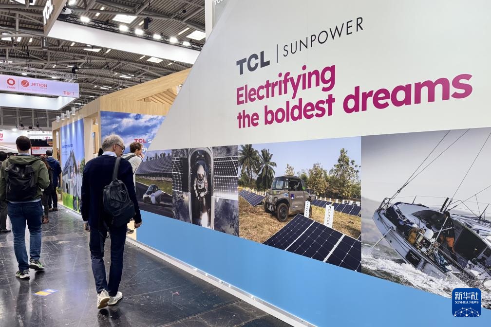 5月7日,參觀者在德國慕尼黑舉行的2025年歐洲國際太陽能展上參觀TCL展區(qū)(手機(jī)照片)。新華社記者 黃燕 攝