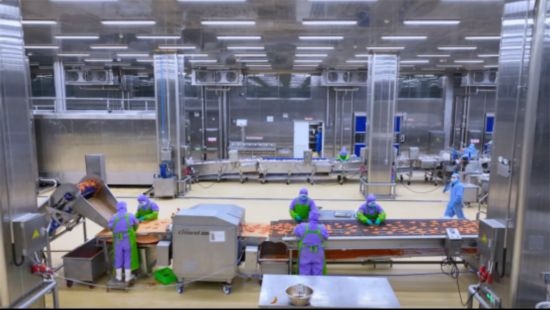初夏時節(jié),膠東半島的微風(fēng)中帶著一絲清爽,而春雪集團的生產(chǎn)基地內(nèi)卻是一派熱火朝天的景象。走進春雪集團的生產(chǎn)廠區(qū),廠房里的溫度、濕度甚至空氣流動都在嚴(yán)密控制之下,身穿防護服的員工們在現(xiàn)代化流水線上有條不紊地操作。眼前的白羽雞在檢驗、宰殺、分割、滾揉、調(diào)理與包裝等環(huán)節(jié)中“闖關(guān)”般地被一一標(biāo)記、質(zhì)檢,井然有序地進入下一道工序。