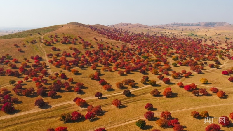 央廣網(wǎng)興安10月18日消息(記者 王秋蕾) 十月的內(nèi)蒙古興安盟科右中旗天高云淡,寒露過后,隨著氣溫下降,6萬(wàn)余公頃五角楓林換上盛裝,給了生命最炫目的顏色,漫山遍野,層林盡染,如詩(shī)如畫。