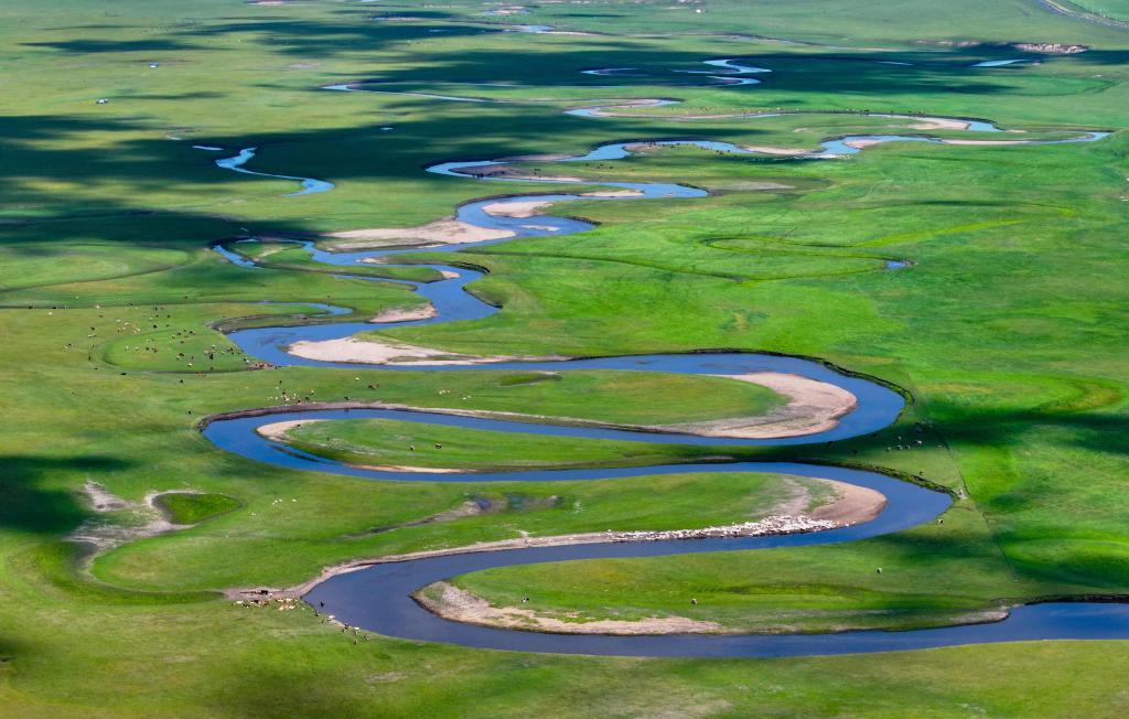 以“曲”聞名天下的莫爾格勒河發(fā)源于內(nèi)蒙古自治區(qū)呼倫貝爾市陳巴爾虎旗境內(nèi),全長319公里。盛夏時節(jié),迂回輾轉(zhuǎn)的河道、低垂的云影、成群的牛羊共同構(gòu)成一幅宛如油畫般的草原風(fēng)情畫卷。