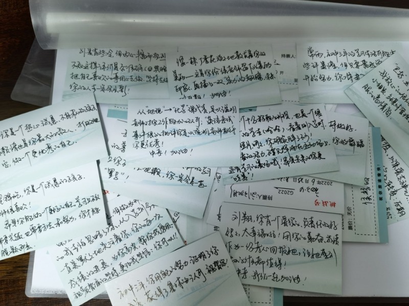 6月20日,呼和浩特市第五中學(xué)初三(4)班班主任侯慧敏老師給班里57名學(xué)生的手寫“告別信”刷屏朋友圈,紙短情長,愛意滿滿。每封信箋做成車票的樣式,正面寫著車次:“挑戰(zhàn)號(hào)”G2022;時(shí)間:2022年6月25日8時(shí)30分;座位:至尊VIP專座;票價(jià):無價(jià)?!敖K點(diǎn)站”并未填寫。侯慧敏說,那是孩子們的夢想,需要靠他們自己來完成。當(dāng)天的畢業(yè)班會(huì)上,當(dāng)每個(gè)學(xué)生打開信箋,滿滿的回憶和濃濃的情誼不禁讓孩子們潸然淚下。