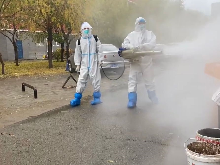 10月29日,呼和浩特市賽罕區(qū)錦繡社區(qū)景觀花園小區(qū),伴隨著“隆隆”的轟鳴聲,幾位身穿防護服的“大白”背著80多斤的消殺設(shè)備義務(wù)對小區(qū)道路、大門、垃圾點、居民樓道等公共場所展開消殺。殊不知,這是一支由15名小區(qū)業(yè)主自發(fā)組成的消殺志愿者團隊,他們自籌資金購買消殺設(shè)備,面對看不見摸不著的病毒展開“總攻”,為保障小區(qū)居民環(huán)境的安全貢獻自己的一份力量。