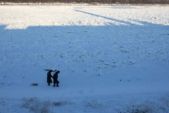 “慢點走,這雪地看著平整,下面還有一層冰?!笔废葟?qiáng)一邊說一邊攙著沈欣慢慢走。沿著江堤一路下坡,走到頭就是黑龍江,江面中間插著國旗標(biāo)識國界。