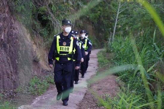 2021年3月,黃日所在的專案組掌握到一個(gè)重要信息,一個(gè)運(yùn)送人員非法入境的犯罪團(tuán)伙正在崇左天等縣秘密轉(zhuǎn)運(yùn)人員。“必須要把這伙犯罪分子裝進(jìn)‘袋子’里!”黃日和戰(zhàn)友們通過縝密偵查,最終決定在天等縣和大新縣接壤的一段窄路上設(shè)伏。