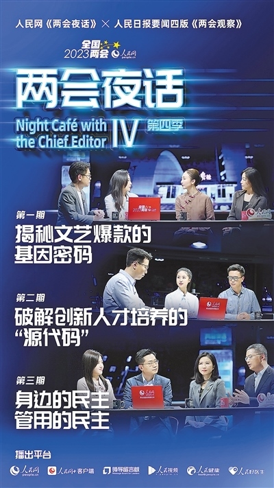 人民日報社總編室和人民網(wǎng)合作推出“兩會觀察”“兩會夜話”對話類融媒體欄目,邀請代表委員與專家學(xué)者、一線工作者交流互動,談履職、話體會。“兩會觀察”欄目在人民日報要聞版推出,以深度采訪和“觀察手記”形式解讀熱點、回應(yīng)關(guān)切。人民網(wǎng)“兩會夜話”欄目同步推出視頻,與版面文字報道相得益彰,視頻播放量超4200萬次。