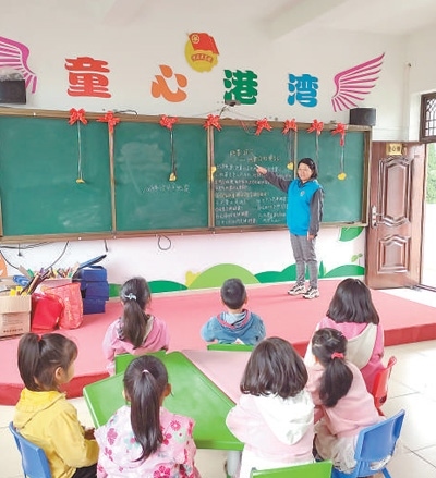 有著十幾年幼兒教育經(jīng)驗(yàn)的劉蓮娟,就這樣被村里推薦為童伴媽媽。同時,她還是螺溪鎮(zhèn)一家幼兒園的老師,住在鎮(zhèn)里。每到周末,她便騎上電動自行車,往返于村鎮(zhèn)之間,每周在“童心港灣”開展10多個小時的親情連線、閱讀陪伴、文體項(xiàng)目、家訪校訪等活動。