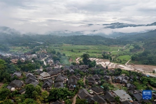 云南省普洱市瀾滄拉祜族自治縣老達(dá)保村夏日景色(2022年7月5日攝,無人機(jī)照片)。