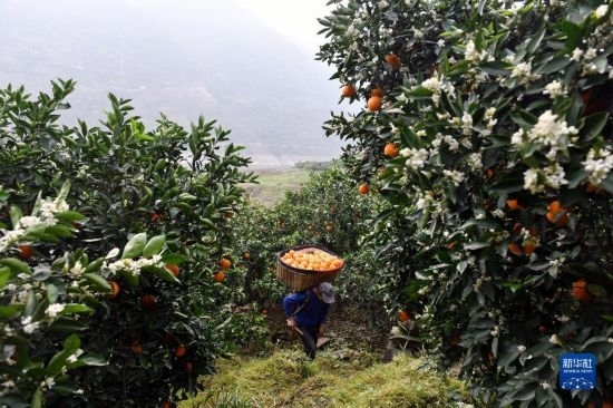 眼下,有“中國臍橙之鄉(xiāng)”美譽的三峽庫區(qū)湖北省秭歸縣長江兩岸橙花盛開,晚熟臍橙掛滿枝頭,花果同樹的橙樹與峽江景觀相映如畫。