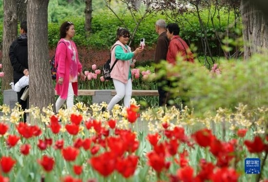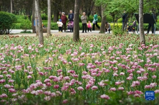 近日,山西省太原市迎澤公園內(nèi)各色郁金香競(jìng)相綻放,吸引游人前來觀花賞景。
