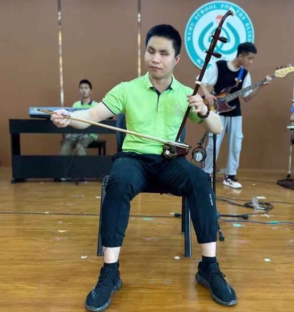 2021年,先天性失明的毛歡笑來到蕪湖市盲人學校后,沒有錯過黑眼睛樂隊在校園里的任何一次演出。