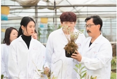 萊蕪職業(yè)技術(shù)學(xué)院教授王鋒祥(右)在進行鐵皮石斛種植技術(shù)指導(dǎo)。周美棟攝