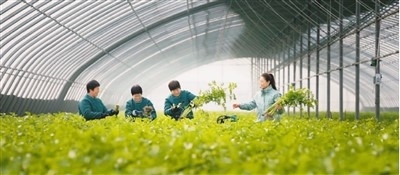 萊蕪職業(yè)技術(shù)學(xué)院師生在萊蕪區(qū)苗山鎮(zhèn)田家樓村的白花丹參種植基地查看種苗情況。趙樹宴攝