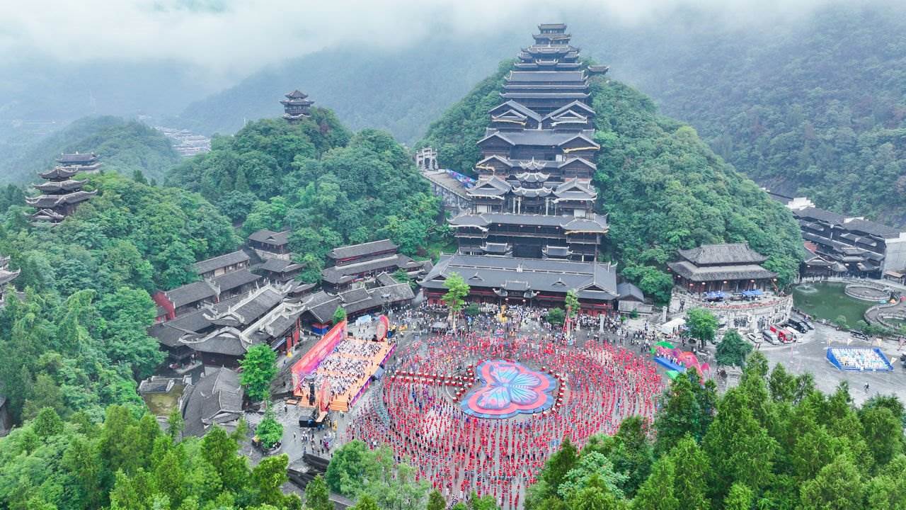 5月26日,2023第十二屆中國(guó)烏江苗族踩花山節(jié)在重慶彭水拉開序幕。上萬名苗鄉(xiāng)兒女身著節(jié)日盛裝聚集在這里,共跳踩花山、齊唱“嬌阿依”,現(xiàn)場(chǎng)一片歡樂的歌舞海洋,場(chǎng)面壯觀。