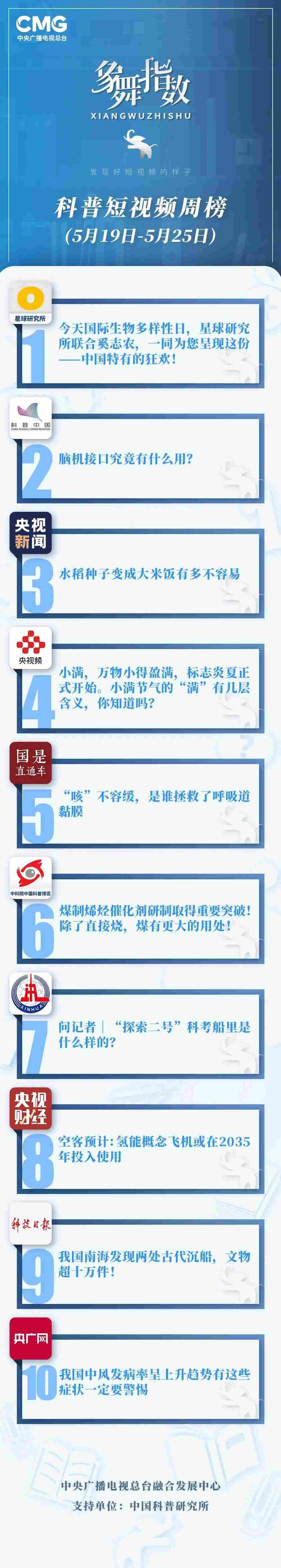 象舞指數(shù)|科普短視頻周榜(5月19日-5月25日)