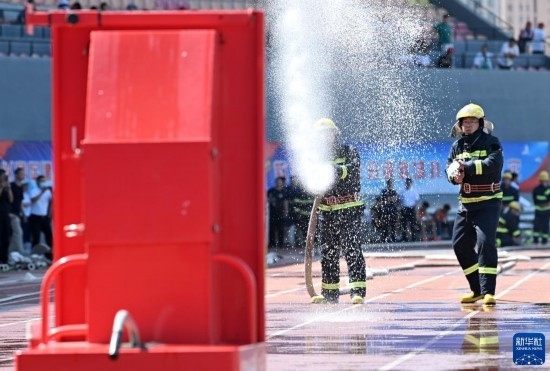 6月2日,微型消防站代表參加水槍打靶消防業(yè)務技能比武。