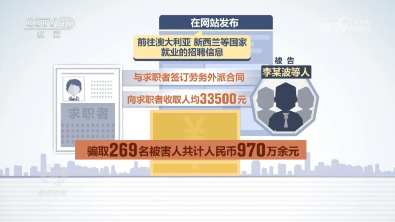 2023年5月,北京市房山區(qū)法院也判決了一起出國勞務詐騙案,被告李某波因詐騙罪一審判決13年6個月有期徒刑。判決書顯示:被告李某波等人冒用北京一家勞務派遣有限公司名義開展業(yè)務,在網(wǎng)站發(fā)布前往澳大利亞、新西蘭等國家就業(yè)的招聘信息,與求職者簽訂勞務外派合同,向求職者收取人均33500元的費用,最終騙取269名被害人共計人民幣970萬余元。檢察官還總結(jié)了這類詐騙案的幾個特點。