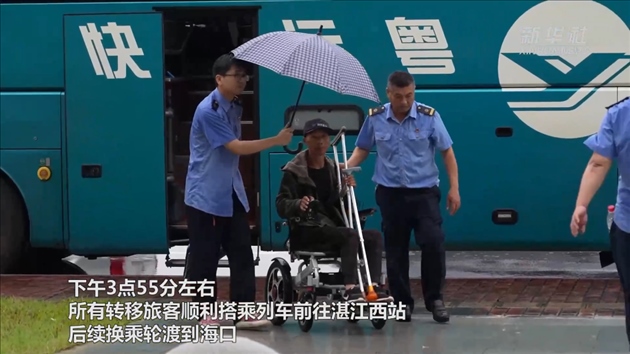 下午3點55分左右,所有轉移旅客順利搭乘列車離開前往湛江西站,后續(xù)換乘輪渡到???。