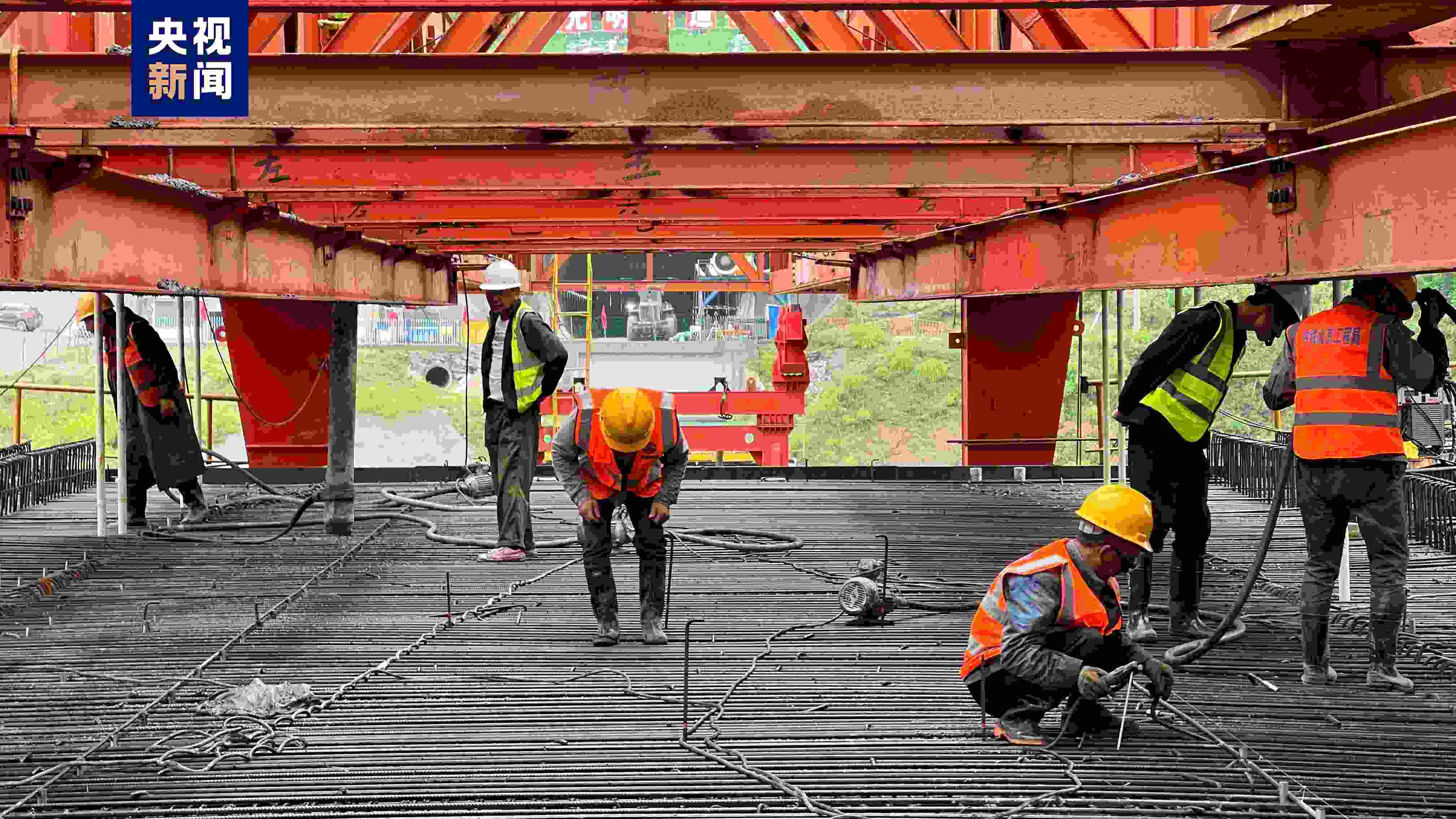河水壩大橋位于重慶市開州區(qū)巫山鎮(zhèn)河龍村北側(cè),橋址跨越河谷地形起伏較大,植被茂密,水面寬約12米,橋址地層巖性主要為軟塑狀粉質(zhì)黏土,層厚約2.1米,具有承載力低、壓縮性高、厚度分布不均等特點,地質(zhì)條件較為復(fù)雜。本次澆筑成功的是河水壩大橋首孔現(xiàn)澆梁,經(jīng)過施工人員連續(xù)10小時的奮戰(zhàn),孔長32m,高3.03m,重約900t的移動模架現(xiàn)澆梁順利完成混凝土澆筑。據(jù)中鐵北京工程局成達萬高鐵項目一工區(qū)經(jīng)理烏小平介紹:“河水壩大橋首孔現(xiàn)澆梁采用移動模架現(xiàn)澆法施工,制梁具有機械化程度高、靈活性強、節(jié)約人力成本、施工周期短、使用輔助設(shè)備少、重復(fù)利用性高等特點,既保證了工程質(zhì)量,又能加快施工進度,具有良好的經(jīng)濟效益?!币苿幽<墁F(xiàn)澆法施工有效解決了控制性工程長大隧道架梁機無法及時架梁的問題,縮短了整體工期,確保項目按期順利推進。