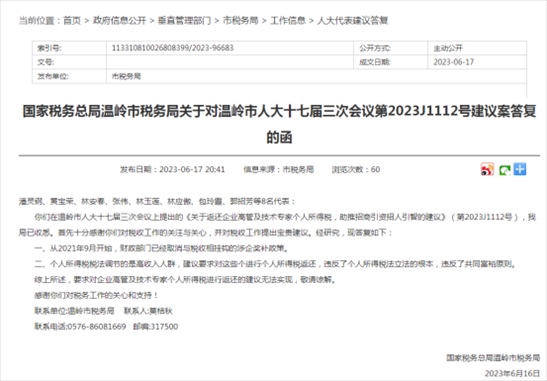 ·浙江溫嶺多位代表委員建議返還企業(yè)高管個稅,當(dāng)?shù)刎敹惒块T回應(yīng):違反共同富裕原則。