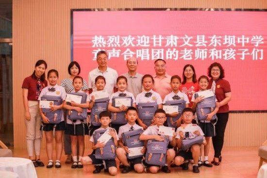 7月4日中午,在中國記協(xié)會(huì)客廳,文縣東壩童聲合唱團(tuán)的孩子們見到了他們熟悉的中國記協(xié)黨組書記、副主席劉思揚(yáng)爺爺。今年2月,劉思揚(yáng)爺爺專門來到文縣,走進(jìn)他們的排練廳,聆聽了他們即將在甘肅廣播電視總臺演出的曲目。他當(dāng)場說:“我被孩子們眼中的光深深地觸動(dòng)了。這是一種自信的、堅(jiān)毅的光。帶著這種光,無論你們將來走出大山,還是學(xué)成后回到山里建設(shè)家鄉(xiāng),這種自信和堅(jiān)毅的情愫都將伴隨你們終生。”今天孩子們都成了劉思揚(yáng)爺爺?shù)男】腿?。劉爺爺給孩子們講述了什么是記者、什么是記協(xié),鼓勵(lì)孩子們好好學(xué)習(xí),將來報(bào)效祖國。劉爺爺還為每個(gè)孩子準(zhǔn)備了滿滿一個(gè)大書包的各種禮物。孩子們排著演出隊(duì)形,為中國記協(xié)的老師們唱出了《大山里的孩子》,還有那首剛剛學(xué)會(huì)的、走進(jìn)央視錄音棚的《童心里的中國》: