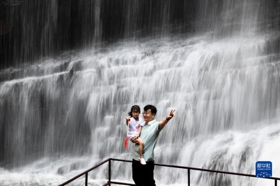 7月9日,游客在新密市伏羲山大峽谷內(nèi)游玩。