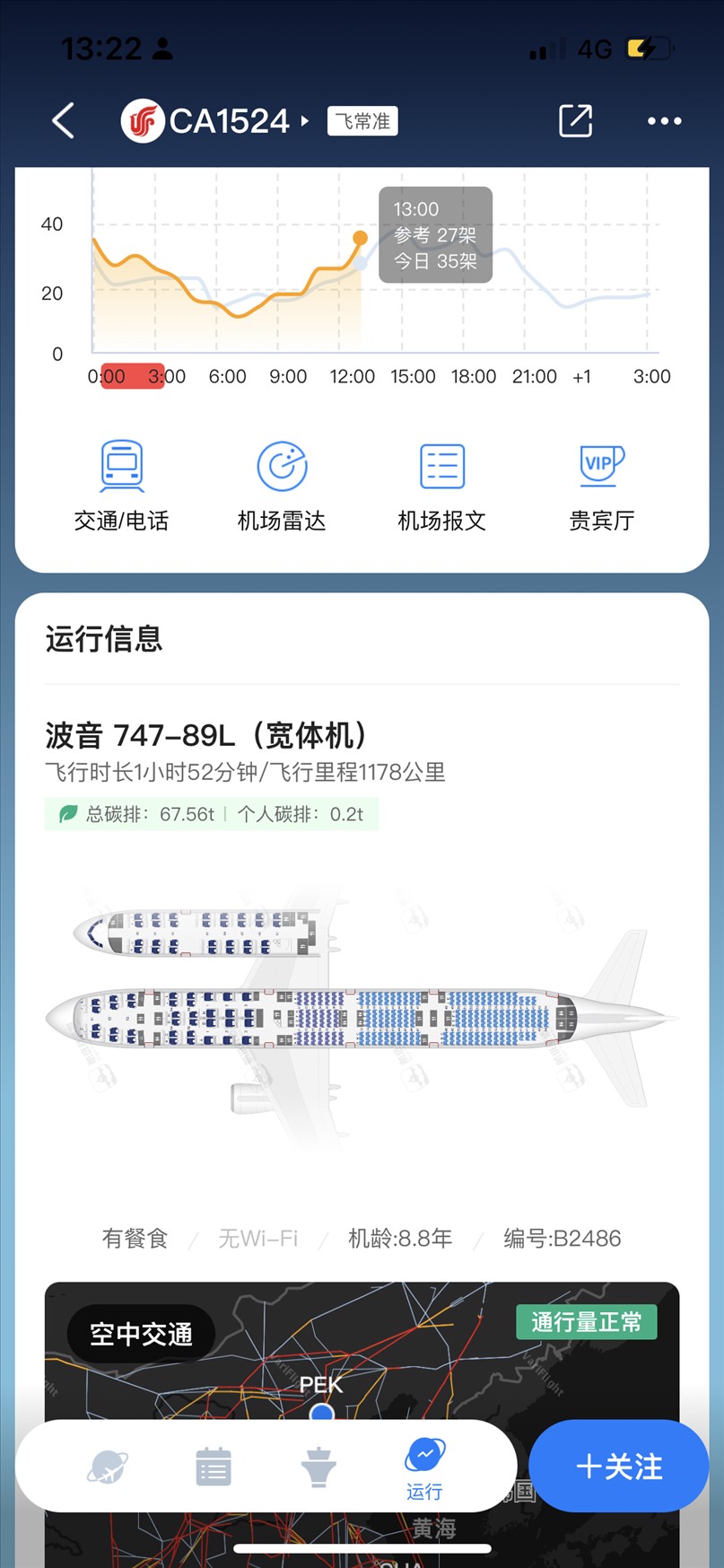 7月11日國航CA1524航班執(zhí)飛機型為波音747-89L。 飛常準截圖