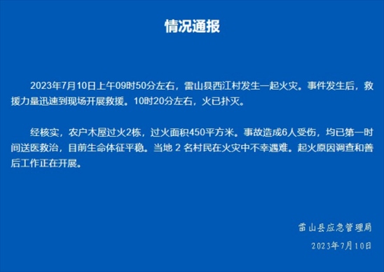 ·貴州西江千戶苗寨景區(qū)發(fā)生火災(zāi),官方通報:兩人不幸遇難。