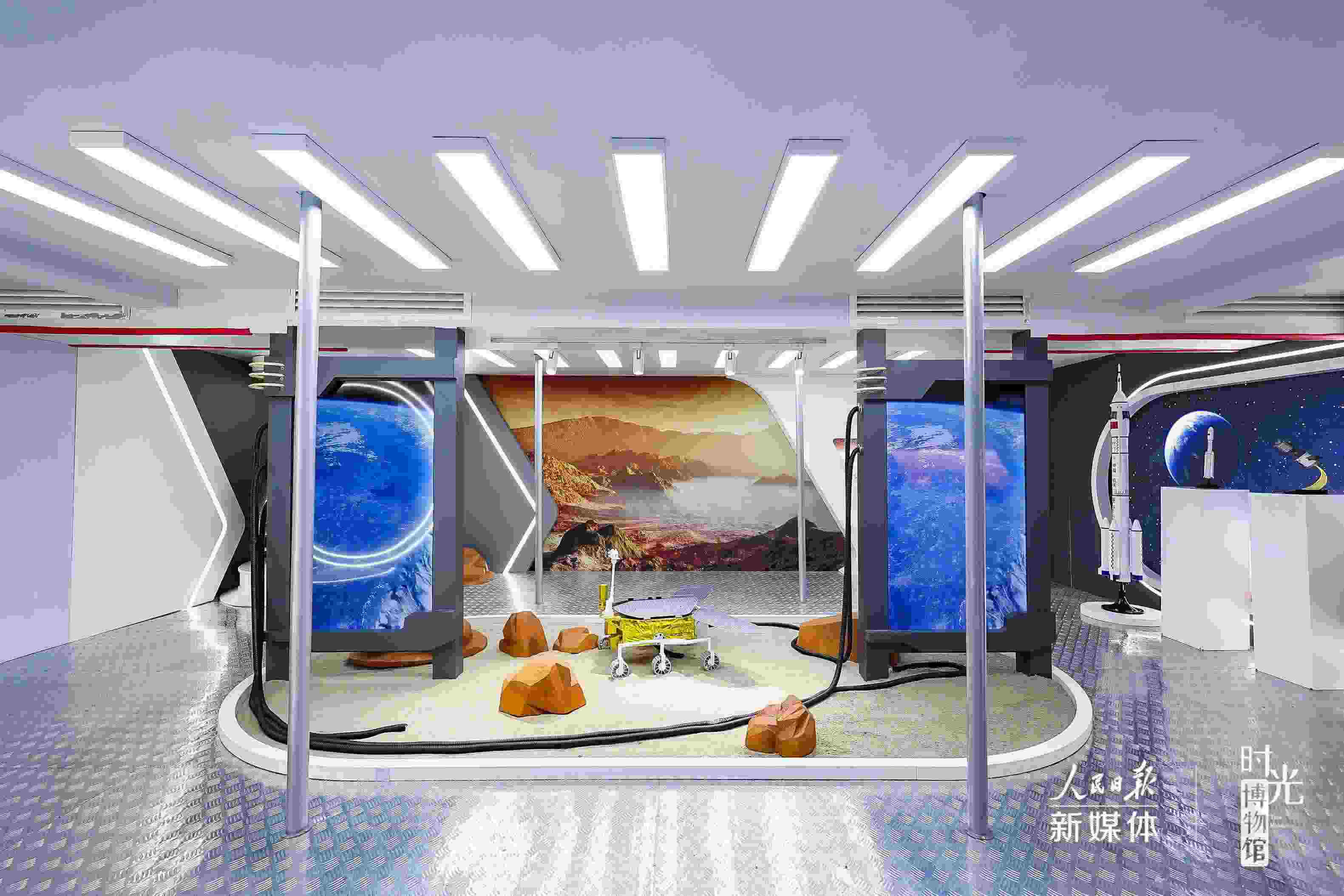 在“星辰大海”展區(qū),航天器模型+視頻演示模擬真實(shí)的太空?qǐng)鼍埃瑥?fù)古電視機(jī)循環(huán)播放過(guò)去30年的航天大事件?!吧裰邸憋w天、“天宮”遨游、“嫦娥”攬?jiān)?、“祝融”探火……將浪漫灑向宇宙,?gòu)成了中國(guó)人獨(dú)有的星辰大海。