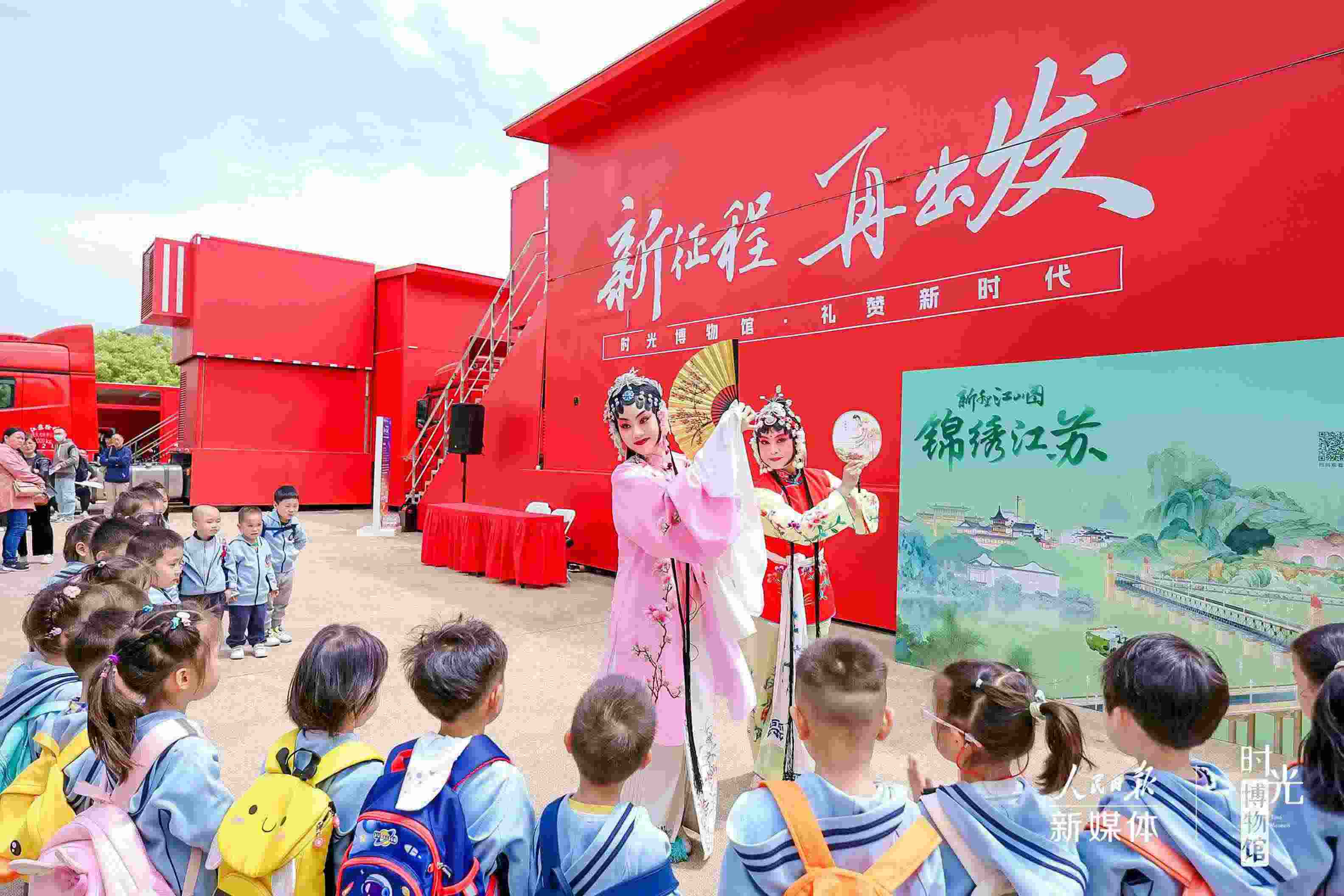 2023年“時(shí)光博物館”流動(dòng)展覽的首站選擇在各年齡層次人群相對(duì)集中的南京市玄武湖公園,結(jié)合江蘇特色進(jìn)行屬地化改造,精心策劃組織了多場(chǎng)非遺表演。昆曲、南京白局、絨花制作、金陵刻經(jīng)印刷技藝展示等,讓參觀者真切感知到日新月異的城市發(fā)展和豐富多彩的本地文化。