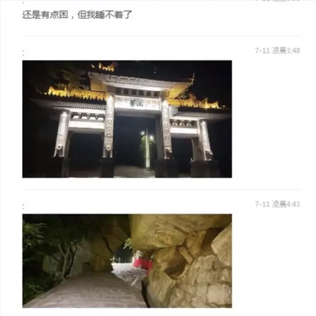 蘭某和女友的微信聊天記錄顯示:10日20:03,蘭某稱,找了個鐘點房,休息休息就去買票。11日3:48,蘭某開始分享華山的照片;7:17,蘭某表示到達北峰頂;9:49,蘭某稱很累,現(xiàn)在才到中峰;18:36,蘭某發(fā)了一張景區(qū)的照片,還說下雨了;19:06,女友發(fā)了個視頻,蘭某回復(fù)詢問表示,“哪里啊這是”,隨后再也沒有消息。