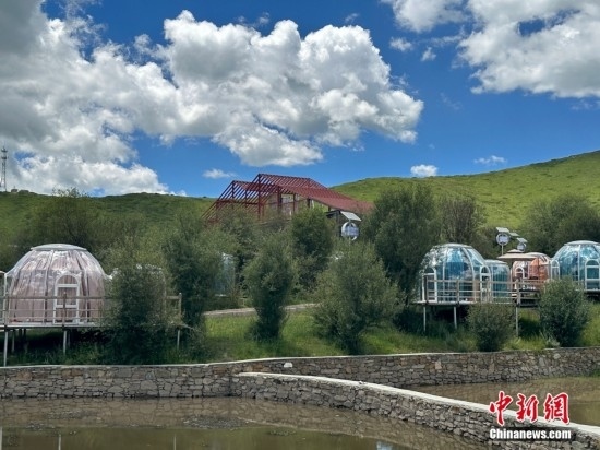 近年來,紅原縣牦?,F(xiàn)代農(nóng)業(yè)園區(qū)堅(jiān)持牧旅融合發(fā)展,如今,供游客休閑的咖啡屋、星空房等設(shè)施正在如火如荼地建設(shè)中。圖為園區(qū)打造的星空房。