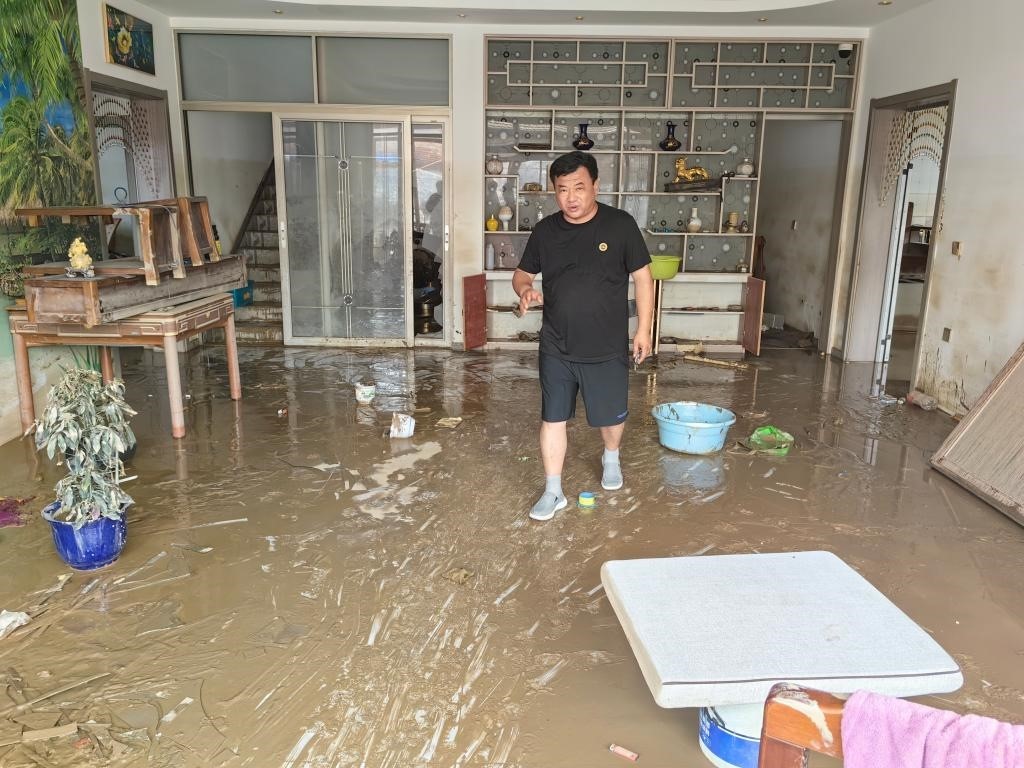 望海莊村艷天綜合商店門前,村民楊立新和趕來幫忙的親戚朋友正在一起整理受損貨品,這個村里最大的超市此次受災較重。“損失不少,但我們不能光等著,先把能搶救的搶救出來,能收拾的都收拾干凈,盡己所能先恢復?!睏盍⑿抡f。