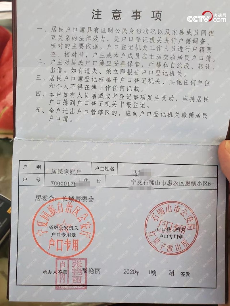 馬明家的新戶口本(中國之聲記者任夢巖 攝)