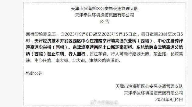 央視網(wǎng)消息:據(jù)@濱海發(fā)布 消息,濱城多座橋梁即將檢測施工,這些時間段禁行↓↓