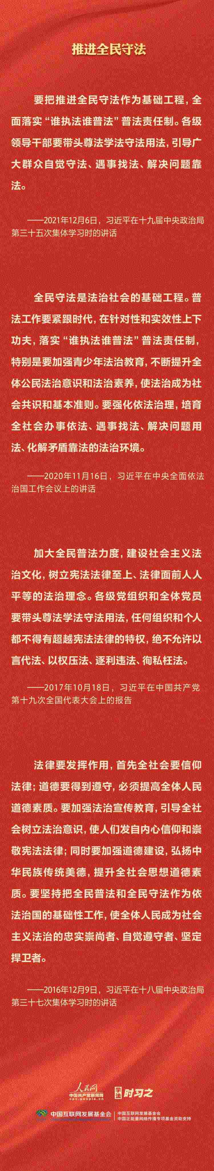 今年是貫徹落實黨的二十大精神的開局之年。中共中央政治局決定從今年4月開始,在全黨自上而下開展學(xué)習(xí)貫徹習(xí)近平新時代中國特色社會主義思想主題教育。習(xí)近平法治思想是習(xí)近平新時代中國特色社會主義思想的重要組成部分,人民網(wǎng)·中國共產(chǎn)黨新聞網(wǎng)推出學(xué)法時習(xí)之·學(xué)習(xí)習(xí)近平法治思想系列策劃,本篇聚焦“堅持全面推進科學(xué)立法、嚴(yán)格執(zhí)法、公正司法、全民守法”。