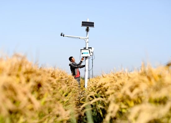10月15日,樂(lè)亭縣數(shù)字循環(huán)現(xiàn)代農(nóng)業(yè)園區(qū)內(nèi),工作人員在調(diào)試監(jiān)測(cè)設(shè)備。(受訪單位供圖)
