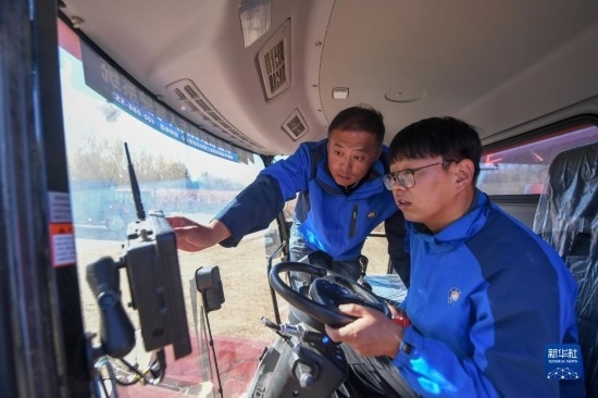 10月19日,在中國科學院“黑土糧倉”科技會戰(zhàn)長春示范區(qū)公主嶺示范基地,中國科學院東北地理與農業(yè)生態(tài)研究所高級工程師陳國雙(左)與團隊成員調試無人駕駛農機。
