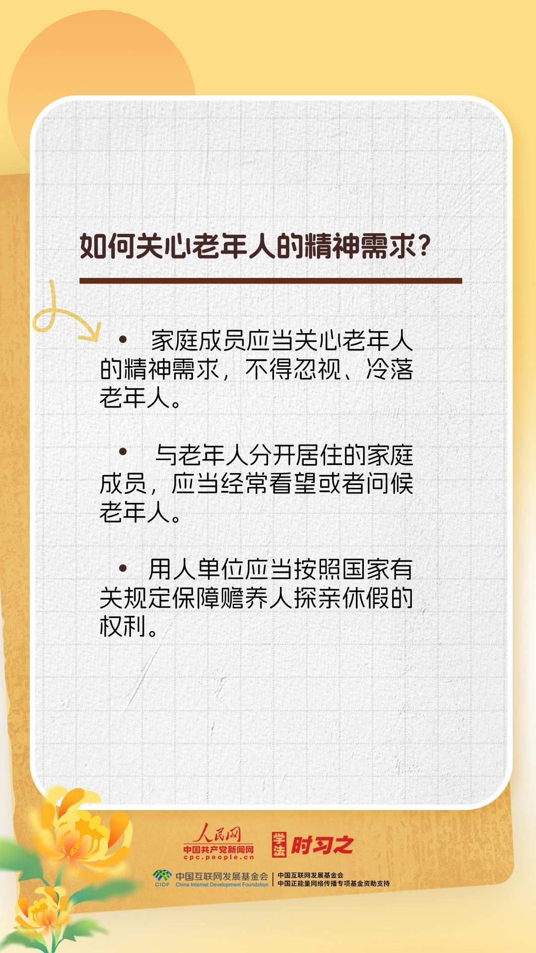 《中華人民共和國老年人權(quán)益保障法》的出臺進一步保障了老年人的合法權(quán)益,弘揚了中華民族敬老、養(yǎng)老、助老的美德。重陽節(jié),一起來了解老年人權(quán)益保障法的相關(guān)規(guī)定。
