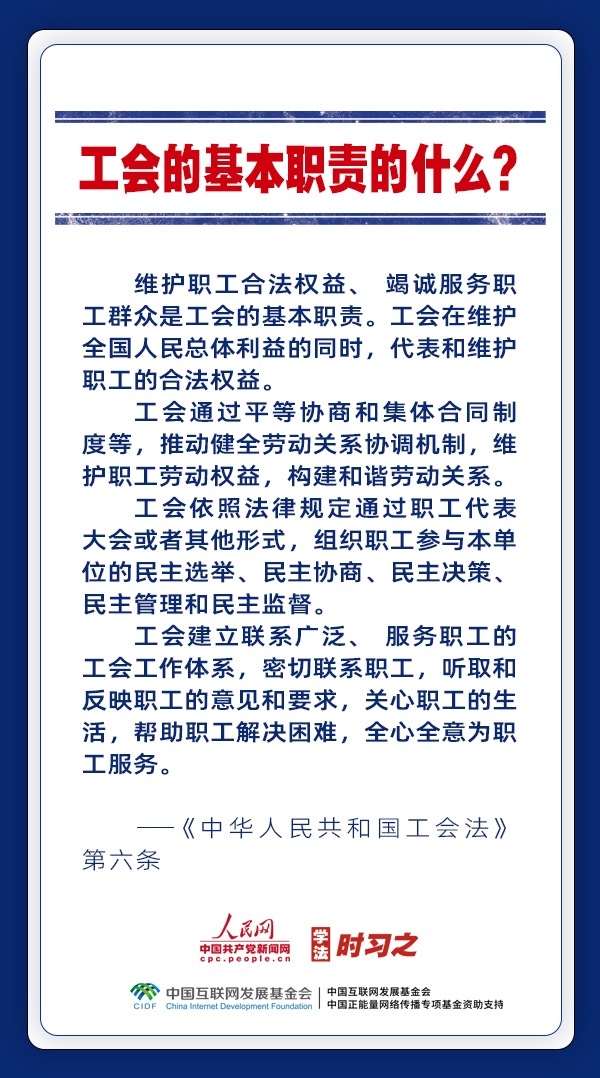 日前,中華全國(guó)總工會(huì)新一屆領(lǐng)導(dǎo)班子產(chǎn)生。黨和政府歷來(lái)重視工會(huì)的地位作用,十分注重加強(qiáng)工會(huì)法律制度建設(shè),專(zhuān)門(mén)為廣大職工制定了《中華人民共和國(guó)工會(huì)法》。網(wǎng)約車(chē)司機(jī)、快遞員、外賣(mài)配送員能入工會(huì)嗎?產(chǎn)業(yè)工人隊(duì)伍建設(shè)改革的目標(biāo)是什么?企業(yè)開(kāi)會(huì)討論哪些事項(xiàng)必須有工會(huì)代表參加?一起來(lái)了解。